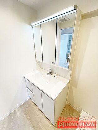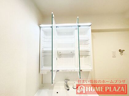 三面鏡の中も収納となっているので、洗面台をスッキリとお使いいただくことができます。