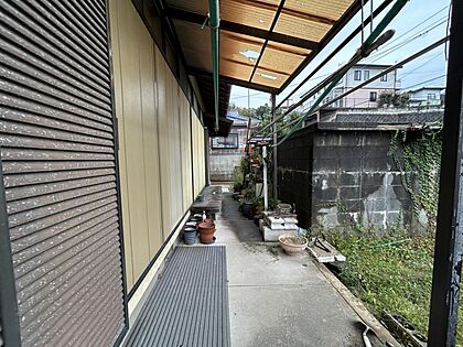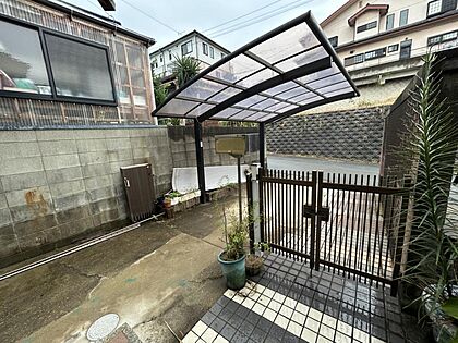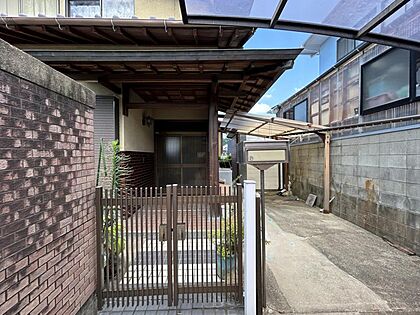 【リフォーム前 外観】駐車場付近の写真です。カーポートは撤去いたします。