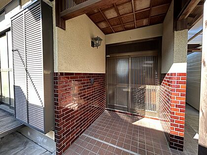 【リフォーム前 玄関】玄関はお家の顔です。新しい引き違いのサッシに交換いたします。新品モニター付インターフォンも取付しますので、来客者の顔も確認できて 気持ち良くお客様をお迎えできます。