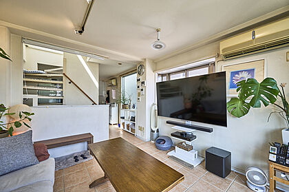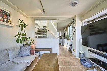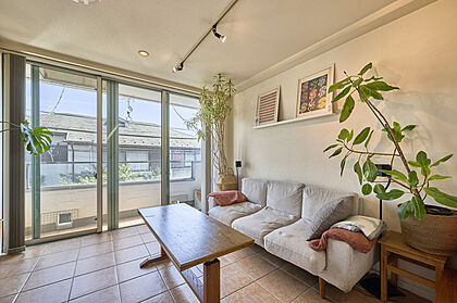 •  タイル張りのおしゃれなリビングスペース。