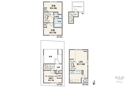 1階サービスルーム約3.7帖。室内の形も綺麗で南向きのため、寝室としてお使いいただけます。