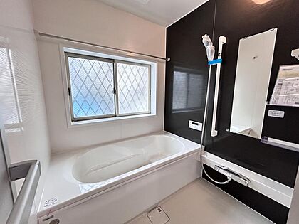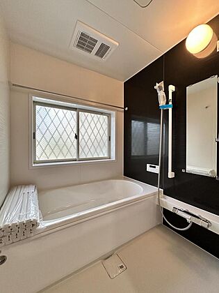 【リフォーム中/浴室】9/29撮影。浴室はハウステック製の新品のユニットバスに交換しました。浴槽は滑り止めの凹凸があり、床は濡れた状態でも滑りにくい加工がされている安心設計です。