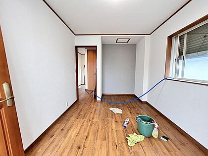 【現在リフォーム中/南西側洋室】9/27撮影。クロスの張替え、フロアタイル上張り、照明器具交換等を行います。