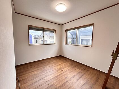 【現在リフォーム中/南東側洋室】9/27撮影。クロスの張替え、フロアタイル上張り、照明器具交換等を行います。