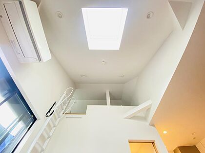 上部吹抜けで天窓から光が降り注ぐリビングは、家の中にいながら日向ぼっこができる自遊空間。空間演出の妙が生み出す光と質のハーモニーはこの住宅のクオリティの良さを実感させてくれます。