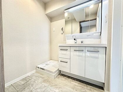 洗面台は大容量収納の三面鏡タイプ♪