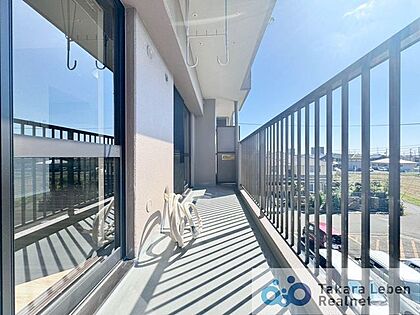 •  バルコニーには物干し金物を装備。リビング・ダイニングに面している為、空間の広がりを感じさせてくれるスペースとなっております。