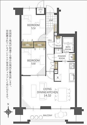 間取り 2LDK 専有面積 55.93m2(壁芯)