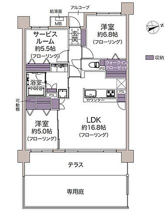 広々としたLDKに加え、1階住戸の特権であるテラスや専用庭付きで、開放感あふれる居住空間を実現。全居室に収納を完備し、さらにウォークインクローゼット(WIC)も備えているため、豊富な収納力が魅力です。