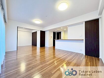 約16.8帖の広々LDK。キッチンからリビング全体を見渡すことができます。各居室では独立性を保ちながらも、リビングでは家族が一緒に寛げる空間に。