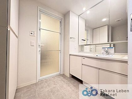 気持ちの良い朝はキレイな洗面所から。鏡裏の収納でモノが出がちな洗面所もスッキリ片付きます。