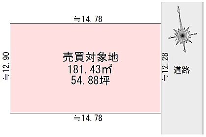 | 土地面積/坪(坪単価) | 181.43m2(登記簿)/54.98坪(21.50万円) | 代表的な接道 | 一方 公道 東 6m ※詳細は備考欄をご確認ください |
