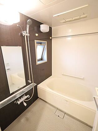 窓付きの浴室。天候や時間に関係なく洗濯物を干すことができる、浴室乾燥機付です♪