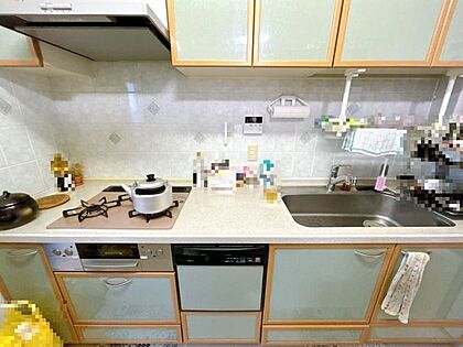 あらかじめカップボードが設置されており、キッチンのデザインに統一感があります♪