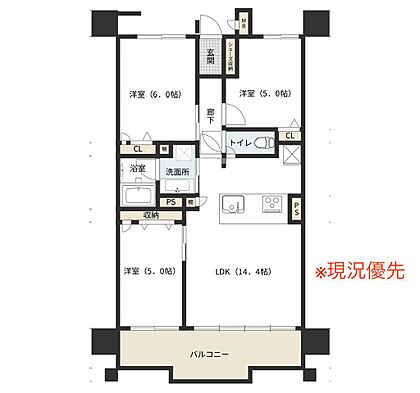 | 間取り | 3LDK | 専有面積 | 61.59m2(内法) |