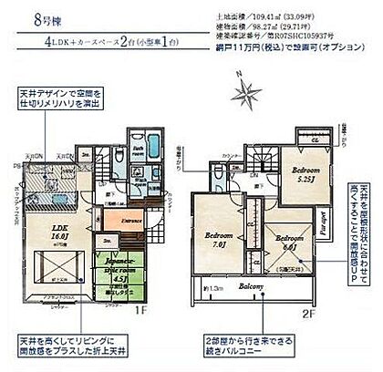 | 建物面積 | 98.27m2 | 土地面積 | 109.41m2(登記簿) |