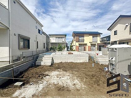 広々とした前面道路に面し、車の出し入れがしやすい現地外観。ゆとりある駐車スペースと開放感のある立地が魅力で、毎日の暮らしに快適さと安心をもたらすマイホームです。