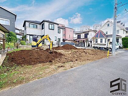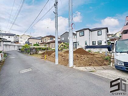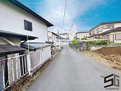 広々とした前面道路に面し、車の出し入れがしやすい現地外観。ゆとりある駐車スペースと開放感のある立地が魅力で、毎日の暮らしに快適さと安心をもたらすマイホームです。