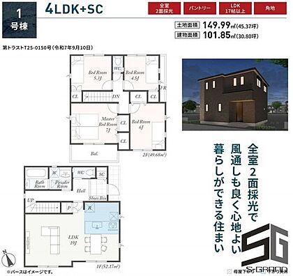 家族の暮らしやすさを第一に考えた間取り設計。採光や収納、生活動線に配慮した快適な住まいです。