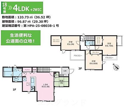 建物面積 96.87m2 土地面積 120.73m2(登記簿)