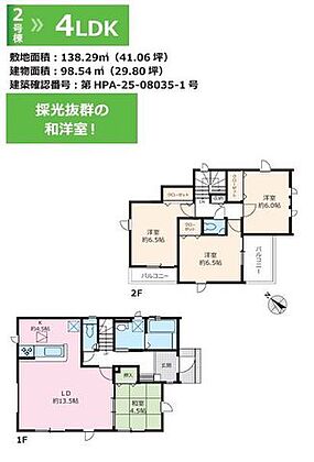 建物面積 98.54m2 土地面積 138.29m2(登記簿)
