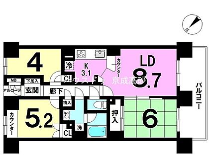 周囲には高い建物のないエリアですので、どこまでも見渡せます。隅々まで陽が差しこみ、お洗濯物もあっという間に乾きそうですね。