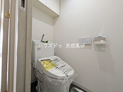 トイレは快適な温水洗浄便座付です。手洗い一体型のトイレ設備はスペースの節約ができ、ゆったりとした空間が確保できます。節水も期待できますね。