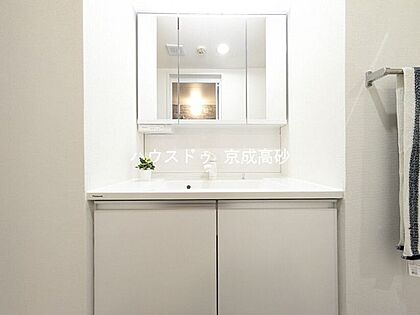 朝の身支度に便利なシャンプードレッサーはとっても便利です!シンク下の収納でアメニティ類のストックもバッチリ!