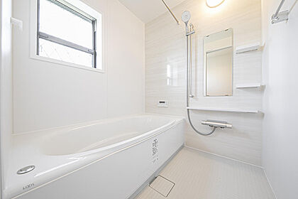 【浴室/施工例】ホワイトで統一し、清潔感あふれる浴室。日々の疲れやストレスから心と身体を解放し、ゆったりとバスタイムをお愉しみいただけます。