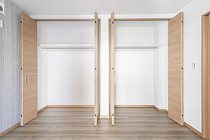 【洋室/約6帖(3階北側)】各洋室にクローゼットを設けています。枕棚とハンガーパイプ付きなので、衣類や小物類を整理整頓して収納することができます。