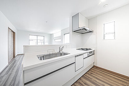 【キッチン/施工例】食器洗乾燥機や浄水器など、暮らしを彩る機能的な設備をご検討いただけます。効率的で使いやすいスペースが、お料理をサポートします。