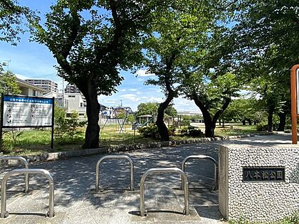 八本松公園春には桜の花が咲く広々とした公園です。敷地内には公衆トイレもございます。 550m