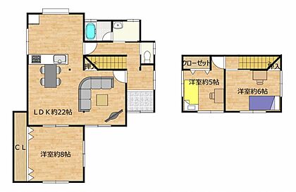 間取り図です。リフォーム後には大きいLDKのほかに3部屋となります。各居室に収納がつくので、過ごしやすいお部屋になりそうです。