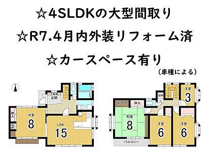 □4SLDKの大型間取り □2025年4月内外装リフォーム済み □カースペース有り(車種による) 準防火地域 |