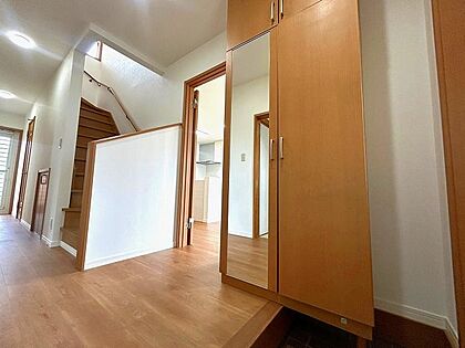 •  姿見と天袋が付いた大型のシューズボックス付き、家族みんなの靴をたっぷり収納できます!