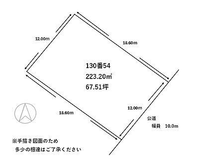 | 備考 | 【接道】 一方 ( 公道 南東 10m ) 建築条件なし 更地渡し | ||