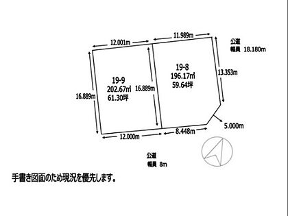 | 備考 | 【接道】 角地 ( 公道 南東 8m ) ( 公道 北東 18.2m ) お気軽にお問い合わせください。 ※2区画(19-8、19-9) 景観法 | ||