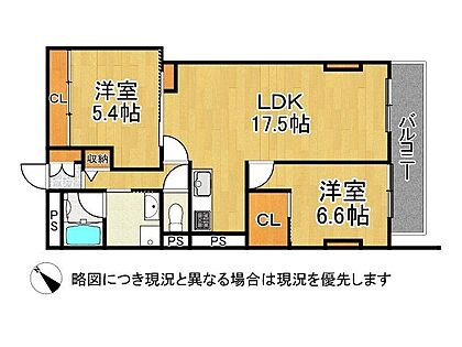 各居室に収納のある使いやすいタイプの2LDKの間取りです