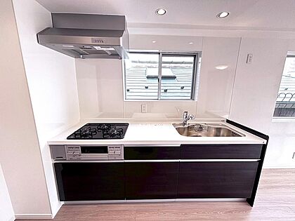 ▼3口ガスコンロ・グリル・重水機能付きのシステムキッチン