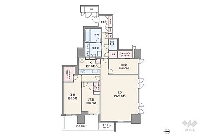 間取りは専有面積107.13平米の3LDK。LDK約27.2帖、全室6帖以上でゆとりのあるプラン。玄関先から室内が見通せずプライバシーに配慮されています。