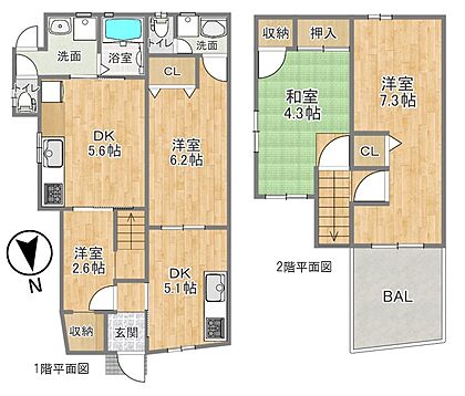 | 間取り | 5DK | 構造及び階数 | 2階建て(連棟式) |