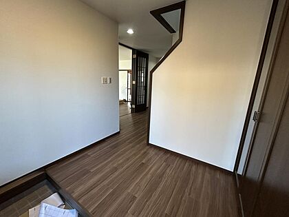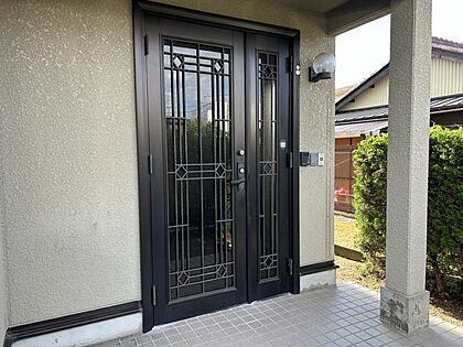 【リフォーム中】玄関扉は開き戸タイプで鍵交換を行います。玄関内部はシューズボックスもございます。