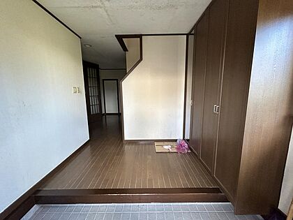 【リフォーム中】1階廊下の収納スペースです。廊下はフロアタイルで上張り、クロスの張替えを行います。