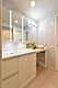 収納3面鏡付きの洗面化粧台です♪小物もすっきり収納できます♪水栓はシャワーホース付きです♪