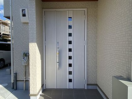 おしゃれなデザインの玄関で、訪れる人を温かく迎えます