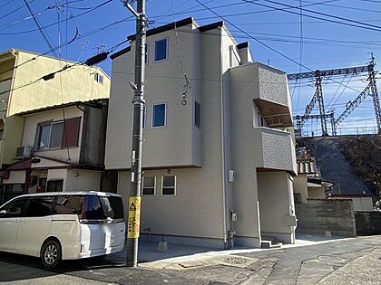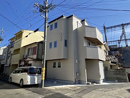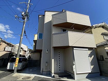 モダンなデザインが魅力の新築戸建てで、スタイリッシュな外観が住む人を引き立て、日々の生活に彩りを添えます