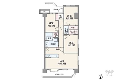 間取りは専有面積67.98平米の3LDK。バルコニー面積は7.66平米です。