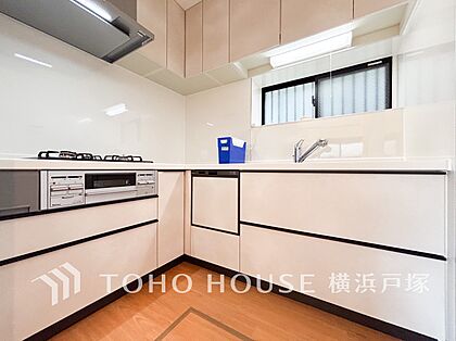 【Kitchen】内装の主役でもあり、日常活躍する重要な水回りでもあるからこそ機能性・デザイン性に力を入れております。お手入れのしやすいシステムキッチンを採用しております。