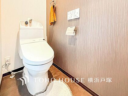 「Toilet」いつまでも清潔な空間であって頂けますように、目に留まるだけではなく、汚れをふき取り易いフロアと壁紙をチョイス致しました。毎日の生活を快適にお過ごし頂けますよう、落ち着いた雰囲気です。