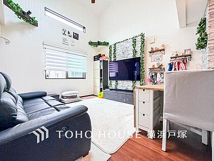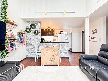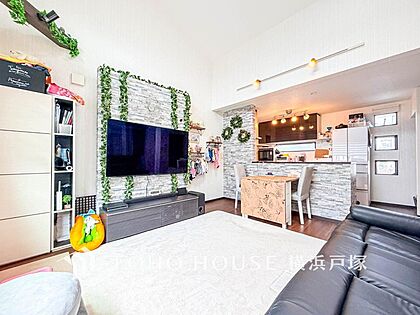 「Living room」明るく開放的な空間が広がるLDK。室内には豊かな陽光が注ぎ込み、爽やかな住空間を演出。ホームパーティーでもゲストと一緒に料理を楽しみながら楽しい時間を過ごせそう。